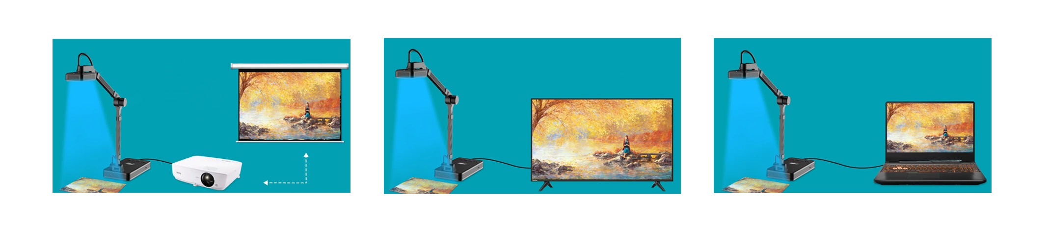 Широкі можливості підключення Залежно від ваших потреб, документ-камеру можна підключити до проектора, телевізора або комп'ютера |