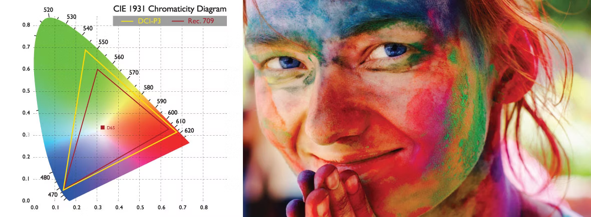 Технологія суперширокої колірної передачі 100 % DCI-P3 здатна конкурувати з цифровими кінотеатрами