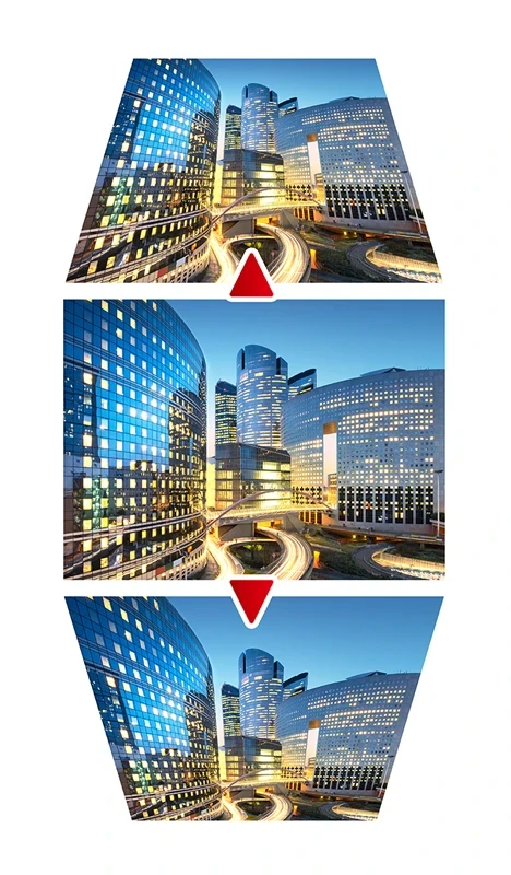 Просунута корекція зображення Вертикальна корекція трапеції дозволяє з легкістю виправляти та коригувати спотворені зображення, що робить установку гнучкою. |