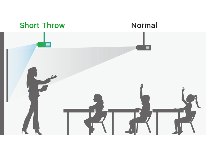 Великий розмір екрана Завдяки короткофокусному проекційному коефіцієнту DX283-ST може проектувати велике чітке зображення до 100" з близької відстані, щоб зекономити простір. |