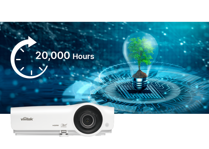 Довший термін служби лампи Завдяки високоефективній та енергоекономній лампі проектор DX283-ST має тривалий термін служби до 20 000 годин у режимі Long Eco, щоб зменшити ризик необхідності заміни лампи. |
