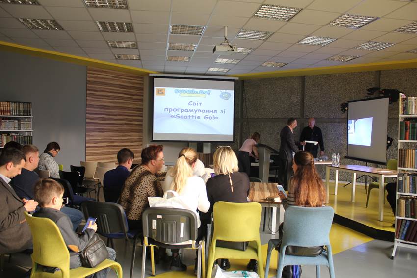 Також, вчитель інформатики Глухівської середньої школи №6 Ольга Муковоз провела презентацію ігор для навчання програмуванню «Scottie Go Edu». А відвідувачі майстер-класу змогли взяти у часть в розіграші тестових комплектів гри та спробувати вдома зіграти особисто.