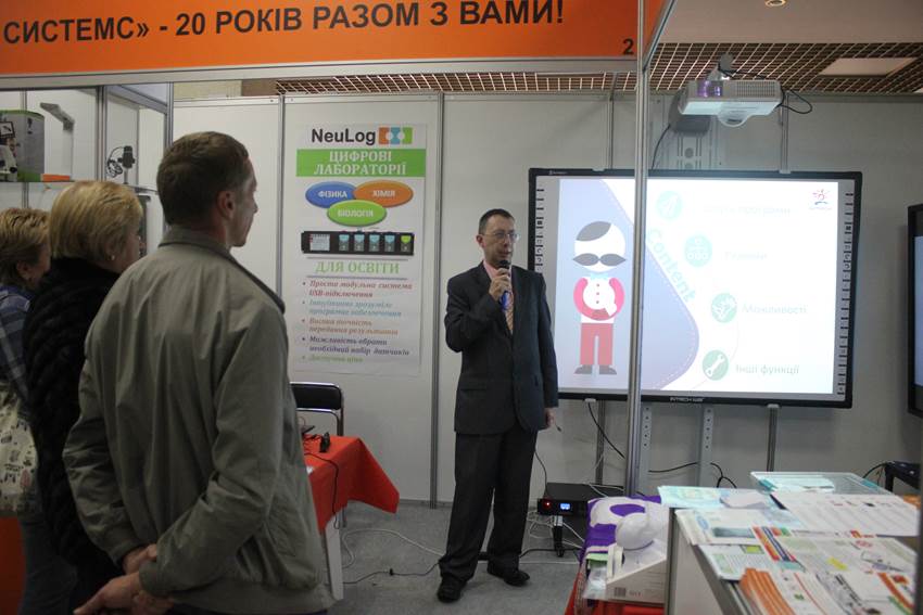 Звісно цього разу «Інтер Системс» не дозволила сумувати відвідувачам стенду і організувала ряд майстер-класів на стенді. І всі бажаючі мали можливість ознайомитися з цифровими лабораторіями НеоЛог (Ізраїль) для кабінетів хімії, фізики і біології, і побачити на практиці, як можна проводити досліди і отримувати миттєві результати. Майстер-клас на стенді по цифровим лабораторіям провів Володимир Сіпій – кандидат педагогічних наук, вчитель фізики, науковий співробітник НАПН України.